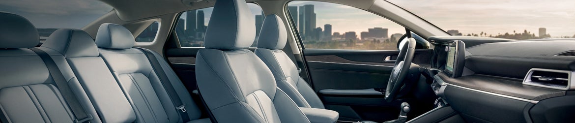 The Kia K5 has front-wheel drive as the standard setup for all trims except the GT-Line AWD, which comes with all-wheel drive. Car buyers can choose to enhance the other K5 trims with all-wheel drive. This optional upgrade offers a stronger grip on the surface below, which can help drivers feel more confident commuting in dirt or snow. If you plan on taking your K5 on camping trips or commuting during the winter months, this upgrade is made with you in mind. Additionally, the Kia K5 has the widest suspension in its class, which provides incredible handling and outstanding steering.