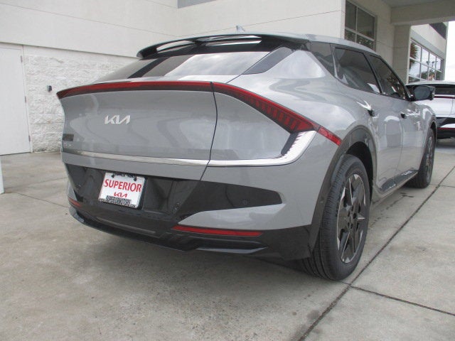 Superior Kia is pumped up to offer this great 2025 Kia EV6 Wind in Wolf Gray. Well equipped with: 4-Wheel Disc Brakes, 6 Speakers, ABS brakes, Air Conditioning, Alloy wheels, AM/FM radio: SiriusXM, Apple CarPlay & Android Auto, Auto High-beam Headlights, Auto-Dimming Mirror w/HomeLink, Auto-dimming Rear-View mirror, Automatic temperature control, Brake assist, Bumpers: body-color, Cargo Mat w/Luggage Board, Carpeted Floor Mats, Delay-off headlights, Driver door bin, Driver vanity mirror, Dual front impact airbags, Dual front side impact airbags, Electronic Stability Control, Emergency communication system, Four wheel independent suspension, Front anti-roll bar, Front Bucket Seats, Front Center Armrest, Front dual zone A/C, Front reading lights, Fully automatic headlights, Heated & Ventilated Front Seats (3-Stage), Heated door mirrors, Heated front seats, Illuminated entry, Knee airbag, Low tire pressure warning, Memory seat, Navigation system: AVN 5.0 Navigation System, Occupant sensing airbag, Outside temperature display, Overhead airbag, Overhead console, Panic alarm, Passenger door bin, Passenger vanity mirror, Power door mirrors, Power driver seat, Power Liftgate, Power passenger seat, Power steering, Power windows, Radio: AM/FM/HD Radio/SiriusXM w/Navigation, Rain sensing wipers, Rear anti-roll bar, Rear seat center armrest, Rear side impact airbag, Rear window defroster, Remote keyless entry, Security system, Speed control, Speed-sensing steering, Split folding rear seat, Spoiler, Steering wheel mounted audio controls, Telescoping steering wheel, Tilt steering wheel, Traction control, Trip computer, Turn signal indicator mirrors, Variably intermittent wipers, Vegan Leather Seat Trim, Ventilated front seats, and Wheels: 7.5J x 19 Black Painted Alloy. 128/101 City/Highway MPG